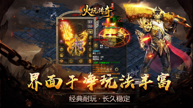 火玩传奇,180复古三职业版本,在经典玩法的基础上还加入了大量创新玩法,不仅能够体验原汁原味的内容,也能体验到各种全新的激情玩法!所有怪物掉落装备均不绑定,玩家之间能够自由的进行交易,搬砖打米的首选圣地!游戏内一切材料、货币和装备全靠打,花时间人人都能有提升,散人也能到顶级!